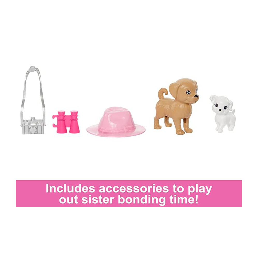 - ¡Juega el tiempo de unión de la hermana con este conjunto de muñecas con Barbie y su hermana menor, Stacie!