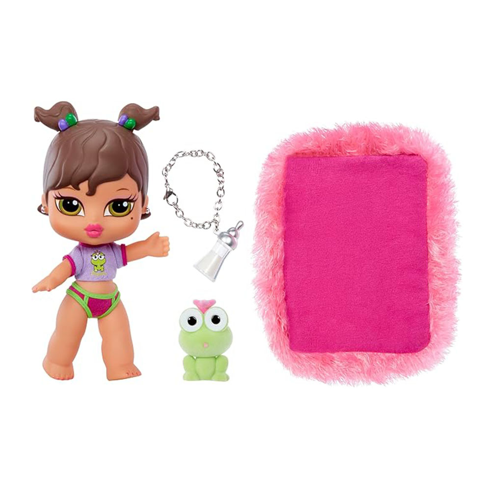 - INCLUYE: 1 muñeca Bratz Babyz, modas reales, collar de biberón/cadena de teclas, mascota flocada, aretes y manta