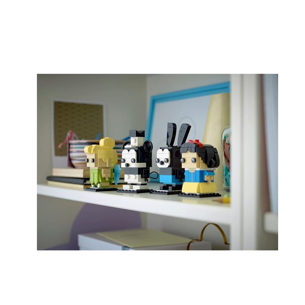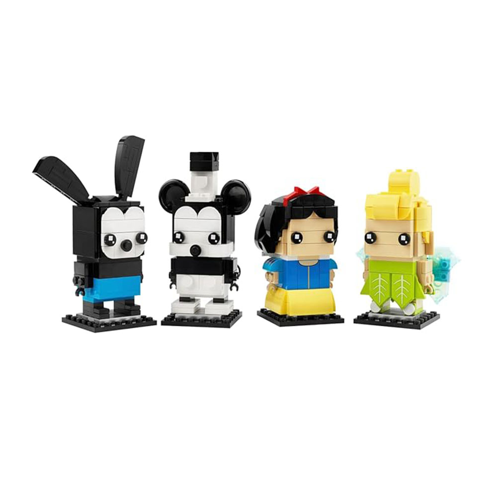 - Personajes icónicos: figuras instalables de BrickHeadz LEGO de Oswald the Lucky Rabbit de Disney, Mickey Mouse, S White y Tinker Bell están listas para su exhibición en este set de Disney 100th Celebration (40622)