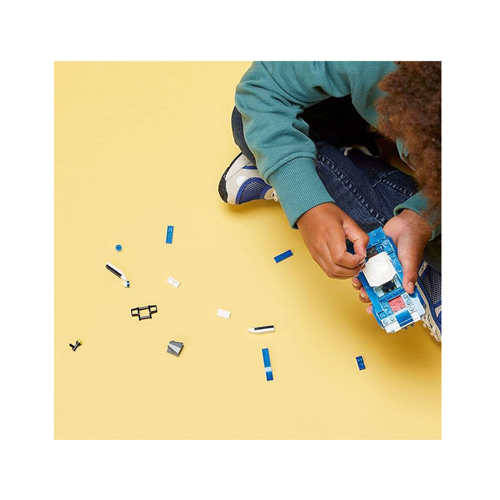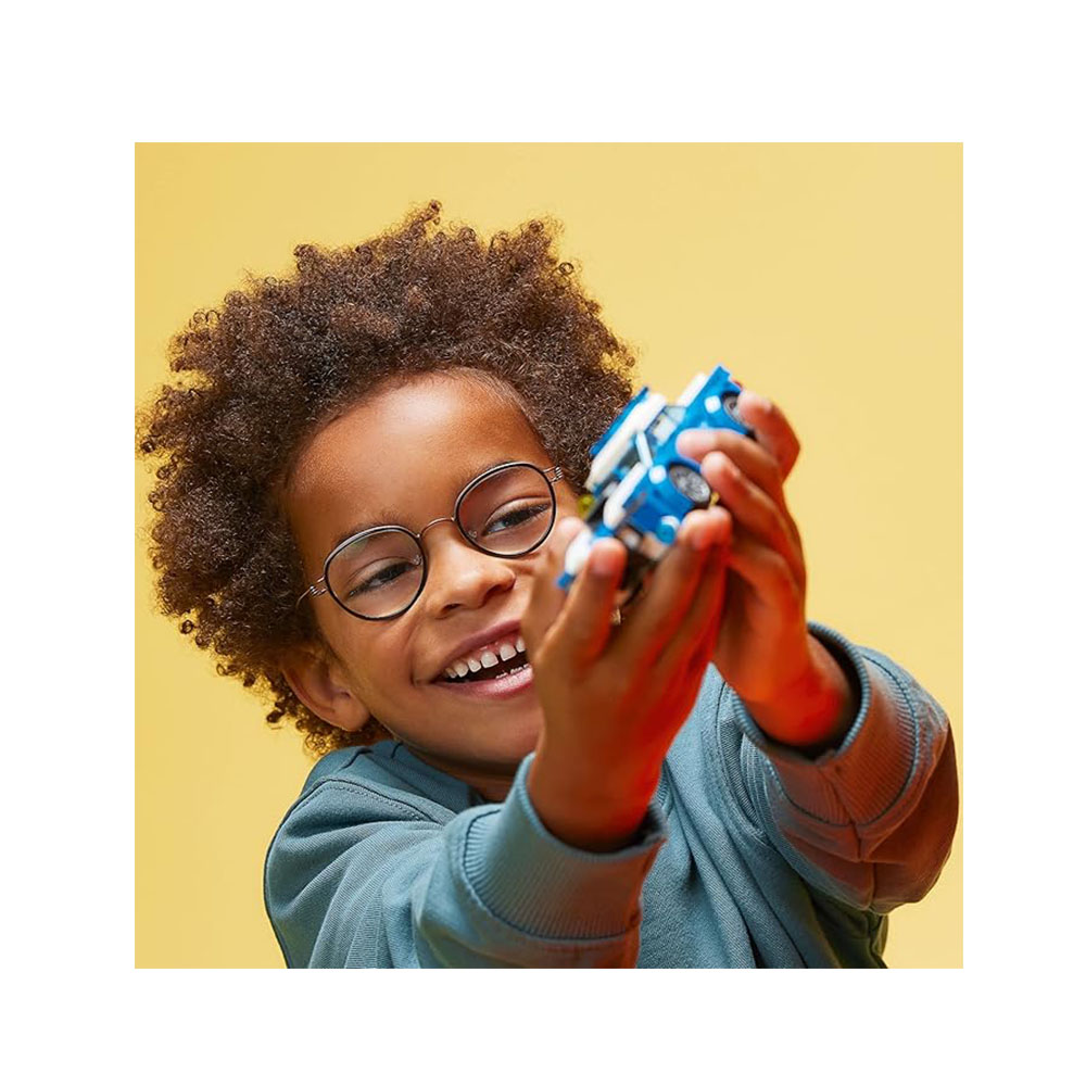 - Cuenta con llantas anchas, guardabarros acampanados y faros fríos para escapar de los ladrones de LEGO City en una persecución de coches de policía de alta velocidad
