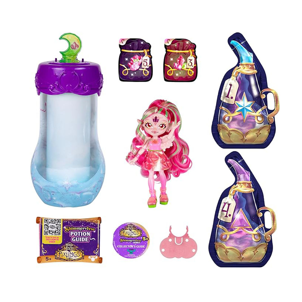 - ¡Magic Mixies Pixlings Shimmerverse Series tiene una nueva y emocionante revelación de brillo burbujeante! ¡Mezcla tu poción y una muñeca Pixling aparecerá mágicamente!