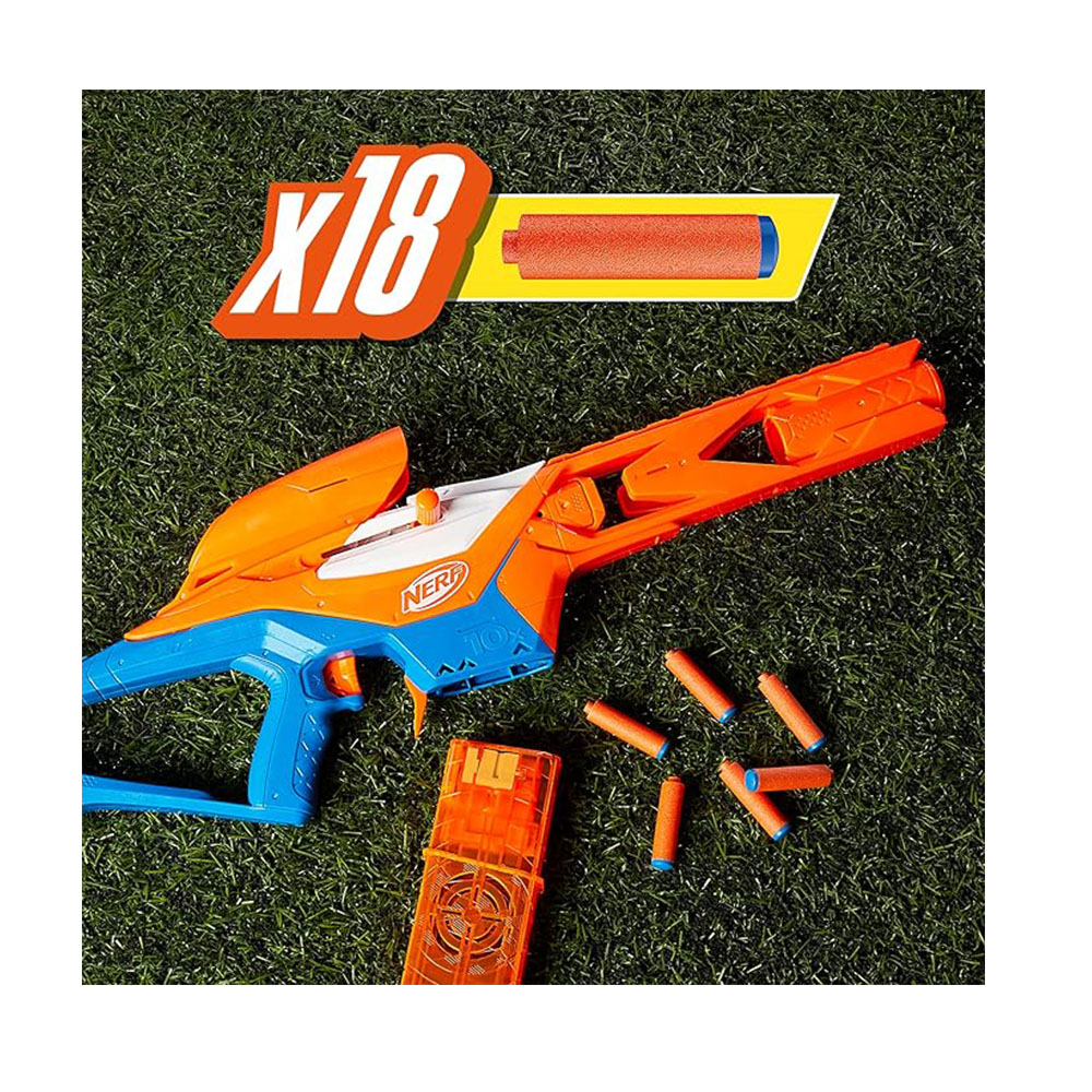 - INCLUYE 18 DARDOS NERF N SERIES N1: El bláster incluye 18 dardos de espuma Nerf N1 diseñados para EXTREME PRECISIÓN, VELOCIDAD y DISTANCIA. Compatible solo con blasters de la serie Nerf N