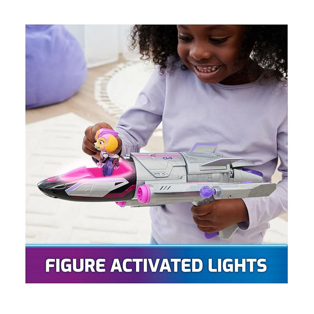 - PAW PATROL MOVIE VEHICLE: Diseñado con detalles y estilo auténticos, Skyees rescue Jet se parece al emocionante avión de juguete que Skye usa para salvar el día en PAW Patrol: The Mighty Movie