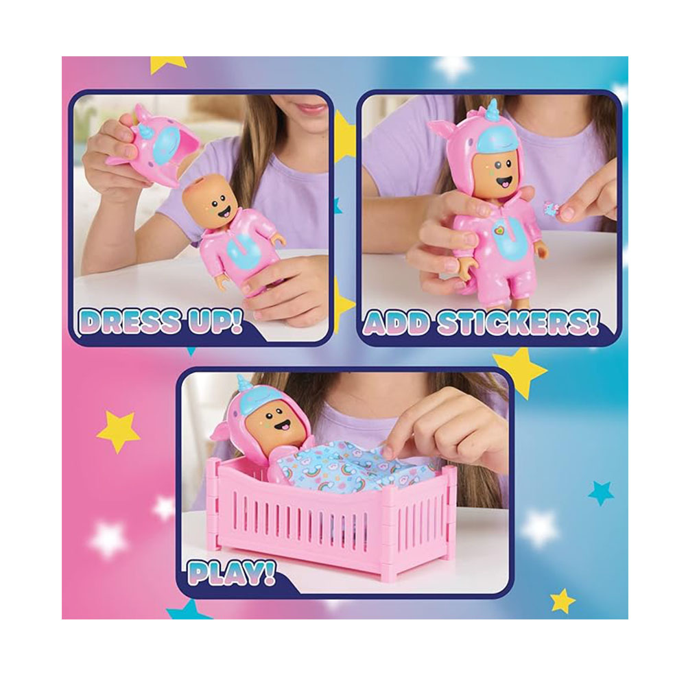 - INCLUYE: 1 7 cm Unicorn Baby Doll, 1 juguete en la nube, 1 cuna, 1 manta para tu bebé, 1 tarjeta de comercio y 1 tarjeta de rascar con código para canjear en el juego en línea Twilight Daycare.